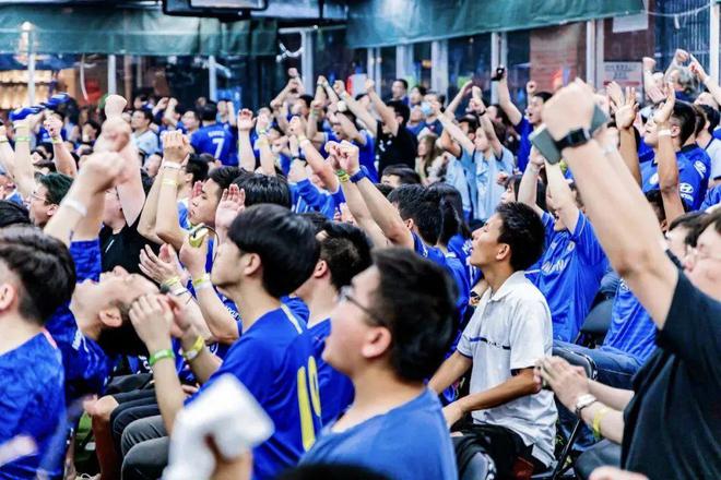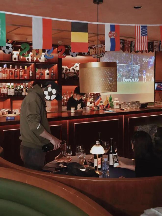 美式运动风格的装饰、海报、球衣、国足比赛,现场气氛十足。 还有很多国际友人齐聚一堂,与他们一起为自己喜欢的球队加油。 这个地方简直就像卡塔尔一样!