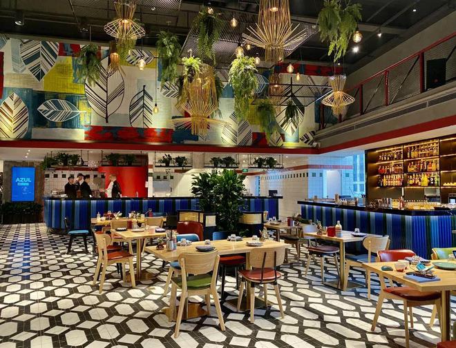 魔法城里的很多商店都非常有特色,比如AZUL蓝广场拉丁餐厅。 它的主色调是蓝色,这也给世界杯增添了一丝梦幻色彩。